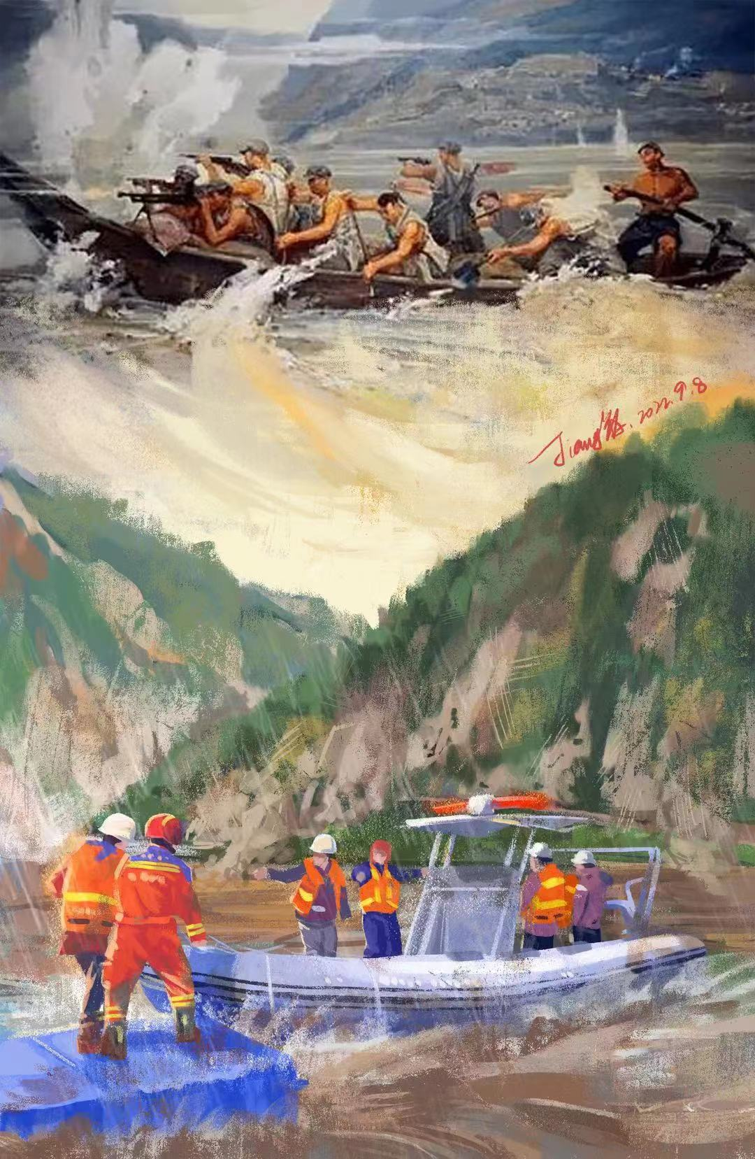 助力抗震救災(zāi)。在“9·5”瀘定地震發(fā)生后,文旅集團(tuán)組織的黨員救援隊(duì)伍第一時(shí)間趕赴災(zāi)區(qū),彩繪團(tuán)隊(duì)以藝術(shù)發(fā)聲,借文藝的力量鼓舞著前線救援隊(duì)伍和廣大人民,創(chuàng)作出《跨越87年的同框》插畫作品,記錄下?lián)岆U(xiǎn)救援的感人瞬間,表達(dá)了災(zāi)區(qū)人民對(duì)全國(guó)救援的感恩之情,插畫作品在中央省市平臺(tái)廣泛傳播,瀏覽量達(dá)千萬(wàn)次。
